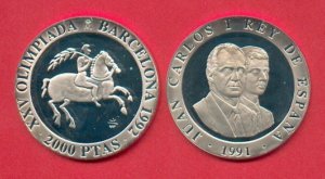 2000 pesetas 1991 plata Barcelona 92 Jinete Iberico , vendido en Diciembre 2010, ¡Por 17.23 EUR!