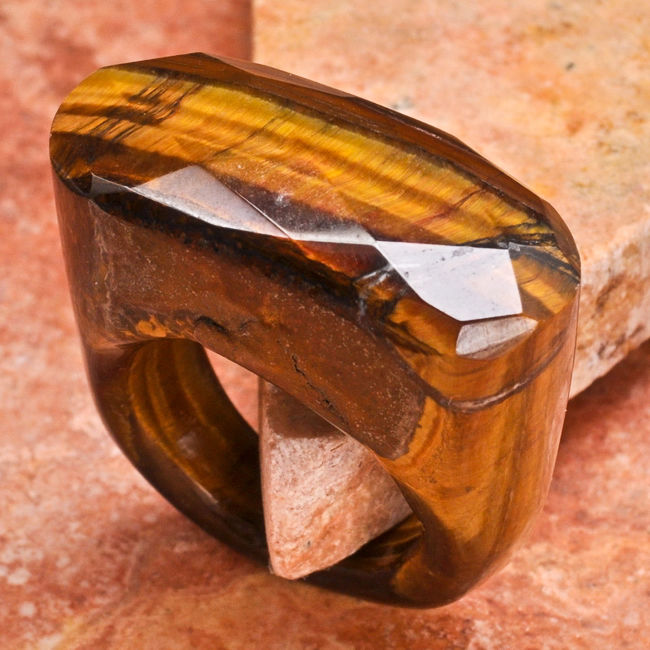 Natural Faceted Tiger's Eye Gemstone Ring Size 8 25 , vendido en Diciembre 2013, ¡Por 0.01 US$!