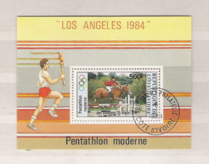 (258) COSTA DE MARFIL - HOJA BLOQUE USADO - HB-26 DEPORTES / EQUITACION/PENTALON , vendido en Septiembre 2011, ¡Por 1 EUR!