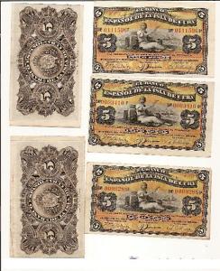 5 BILLETES PLANCHA ,EL BANCO ESPAÑOL DE LA ISLA DE CUBA, vendido en Julio 2010, ¡Por 22.5 EUR!