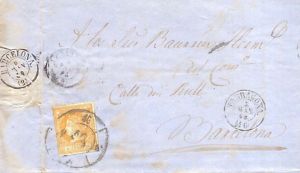 Historia Postal. (ci1238). carta dirigida a Barcelona , matasellos en el reverso. Curiosa carta sobre la necesidad de piezas para teñir