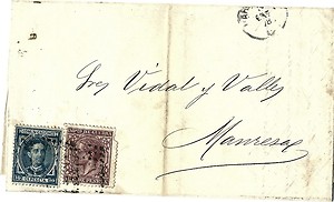 Carta Barcelona a Manresa 3 ene.1878 Impuesto de Guerra, vendido en Septiembre 2011, ¡Por 1.9 EUR!