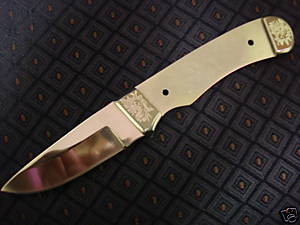 In honor of a great American hero, author and master of irony we have created a blade that captures the image of the old river boats and paddle ships of the Mississippi. Tom Sawyer would be envious. This drop point sports German Silver etched bolsters. Over all length is 6 1/4" with a 2 1/2" blade. 1/8" thick. Takes a 2 3/4" x 1" handle material and built of REAL 440c stainless steel blade. Mirror polished blade and sharpened. Two 3/32" pin holes for your handles.