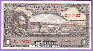 ETHIOPIA 1 DOLLAR BANKNOTE ND[1945] P12b FINE , vendido en Julio 2010, ¡Por 21.52 US$!