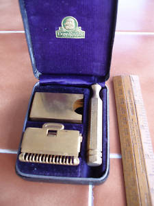 Seller assumes all responsibility for this listing.Item specifics - Barber Shop/ Shaving CollectablesCondition: UsedType: Safety RazorsBrand: Ever Ready A neat, compact yellow metal plated Safety Razor in case,the Ever-Ready 1912 Patent, case covered in leathercloth. In good condition.