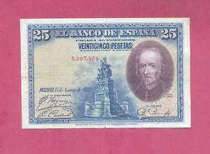 SIN SERIE 25 PTAS DEL 15 DE AGOSTO DEL 1928. DIFICIL, vendido en Junio 2010, ¡Por 3.15 EUR!