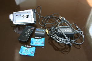 Back Up Battery Remote Control Two Cords to Hook up to Computer and TV 2 Mini DV Tapes (sealed) Sony Bag I purchased with the unitBelow is a review of the unit: